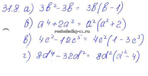 Готовая домашняя работа с ответами по Алгебре за 7 класс Мордкович, Александрова, Мишустина, Тульчинская Задачник Базовый уровень Часть 2 Мнемозина 2013 ФГОС - § 31. Вынесение общего множителя за скобки 8
