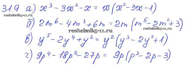 Готовая домашняя работа с ответами по Алгебре за 7 класс Мордкович, Александрова, Мишустина, Тульчинская Задачник Базовый уровень Часть 2 Мнемозина 2013 ФГОС - § 31. Вынесение общего множителя за скобки 9
