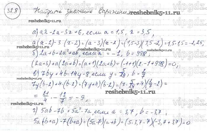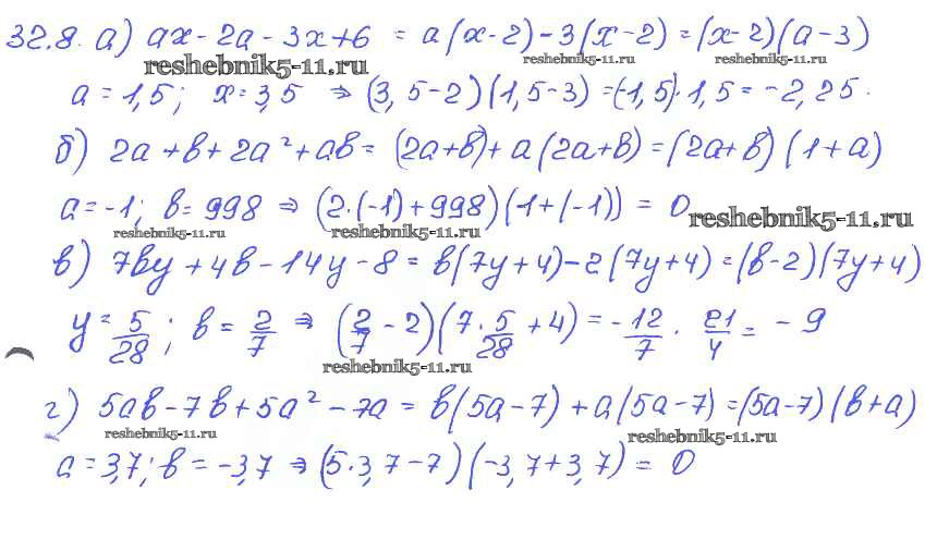 Готовая домашняя работа с ответами по Алгебре за 7 класс Мордкович, Александрова, Мишустина, Тульчинская Задачник Базовый уровень Часть 2 Мнемозина 2013 ФГОС - § 32. Способ группировки 8