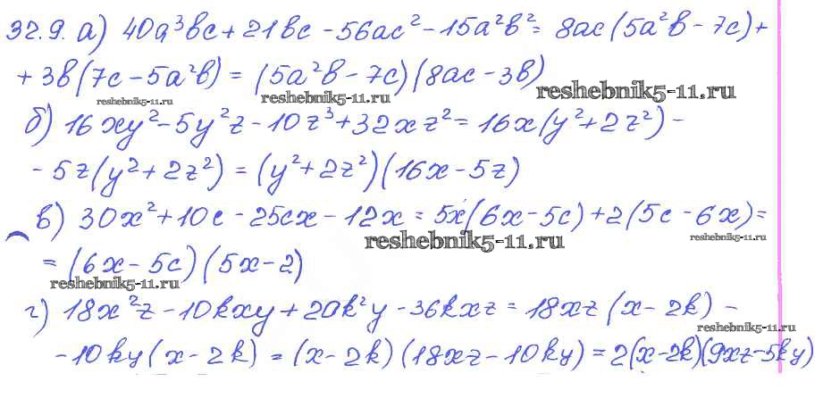 Готовая домашняя работа с ответами по Алгебре за 7 класс Мордкович, Александрова, Мишустина, Тульчинская Задачник Базовый уровень Часть 2 Мнемозина 2013 ФГОС - § 32. Способ группировки 9