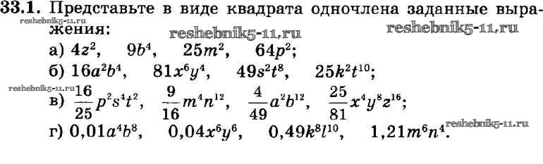 Готовая домашняя работа с ответами по Алгебре за 7 класс Мордкович, Александрова, Мишустина, Тульчинская Задачник Базовый уровень Часть 2 Мнемозина 2013 ФГОС - § 33. Разложение многочленов на множители с помощью формул сокращенного умножения 1
