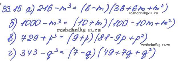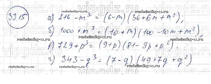 Готовая домашняя работа с ответами по Алгебре за 7 класс Мордкович, Александрова, Мишустина, Тульчинская Задачник Базовый уровень Часть 2 Мнемозина 2013 ФГОС - § 33. Разложение многочленов на множители с помощью формул сокращенного умножения 15