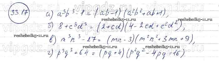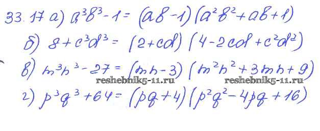 Готовая домашняя работа с ответами по Алгебре за 7 класс Мордкович, Александрова, Мишустина, Тульчинская Задачник Базовый уровень Часть 2 Мнемозина 2013 ФГОС - § 33. Разложение многочленов на множители с помощью формул сокращенного умножения 17