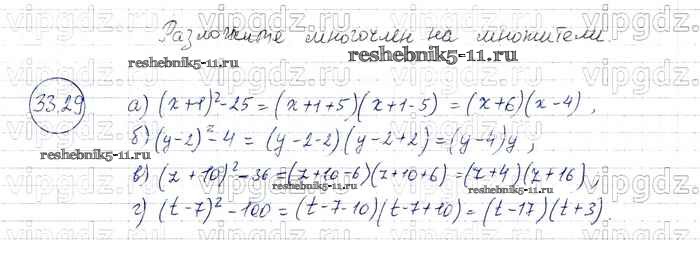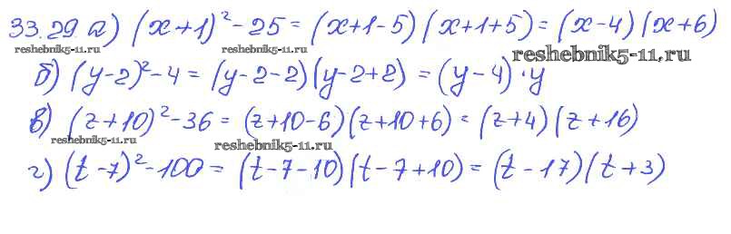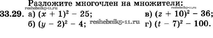 Готовая домашняя работа с ответами по Алгебре за 7 класс Мордкович, Александрова, Мишустина, Тульчинская Задачник Базовый уровень Часть 2 Мнемозина 2013 ФГОС - § 33. Разложение многочленов на множители с помощью формул сокращенного умножения 29