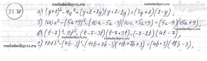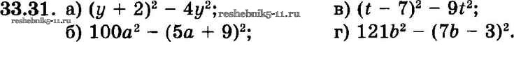 Готовая домашняя работа с ответами по Алгебре за 7 класс Мордкович, Александрова, Мишустина, Тульчинская Задачник Базовый уровень Часть 2 Мнемозина 2013 ФГОС - § 33. Разложение многочленов на множители с помощью формул сокращенного умножения 31