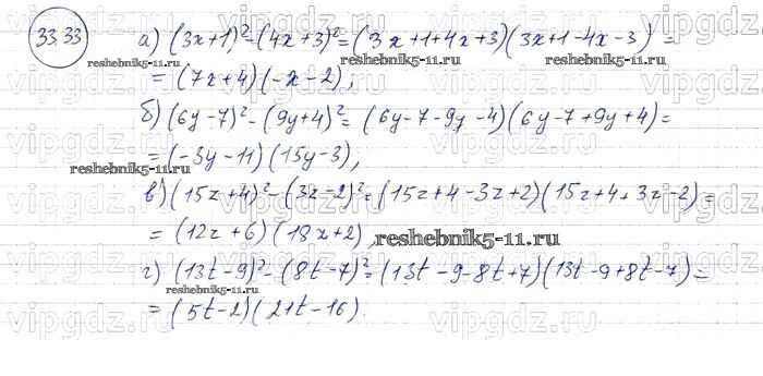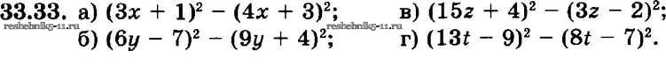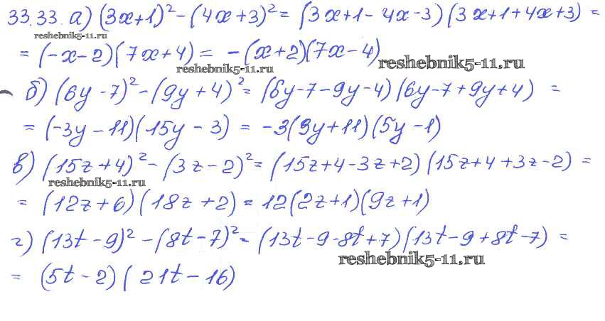 Готовая домашняя работа с ответами по Алгебре за 7 класс Мордкович, Александрова, Мишустина, Тульчинская Задачник Базовый уровень Часть 2 Мнемозина 2013 ФГОС - § 33. Разложение многочленов на множители с помощью формул сокращенного умножения 33