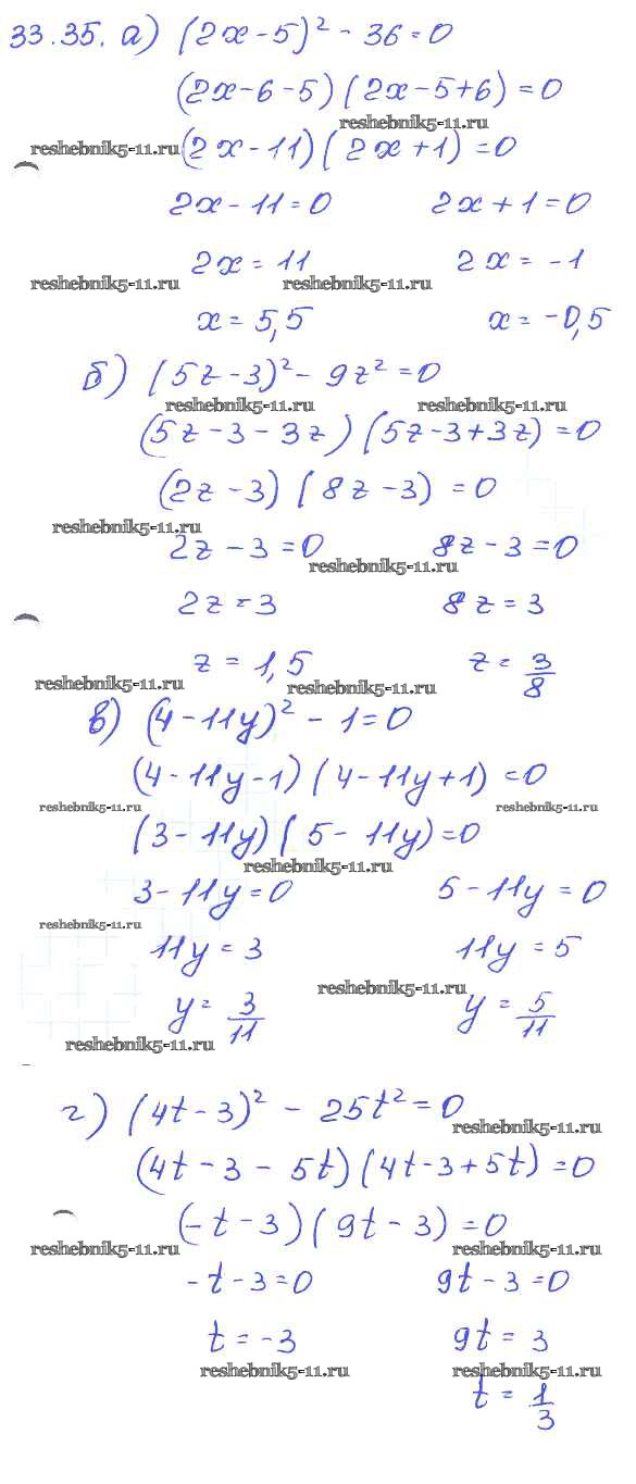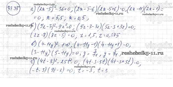 Готовая домашняя работа с ответами по Алгебре за 7 класс Мордкович, Александрова, Мишустина, Тульчинская Задачник Базовый уровень Часть 2 Мнемозина 2013 ФГОС - § 33. Разложение многочленов на множители с помощью формул сокращенного умножения 35