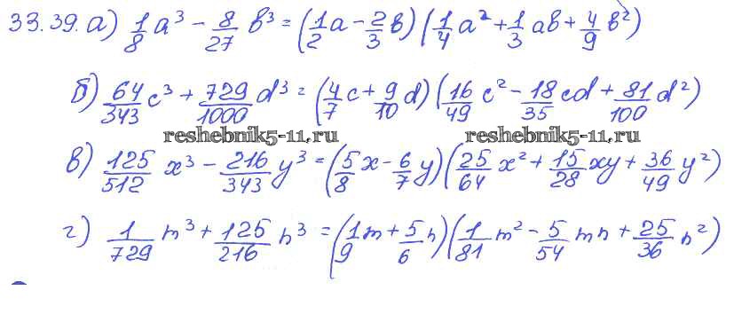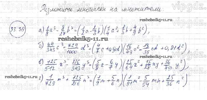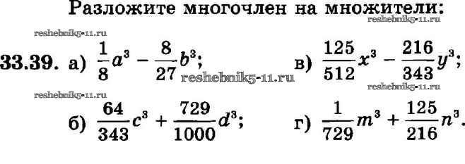 Готовая домашняя работа с ответами по Алгебре за 7 класс Мордкович, Александрова, Мишустина, Тульчинская Задачник Базовый уровень Часть 2 Мнемозина 2013 ФГОС - § 33. Разложение многочленов на множители с помощью формул сокращенного умножения 39