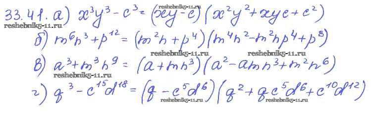 Готовая домашняя работа с ответами по Алгебре за 7 класс Мордкович, Александрова, Мишустина, Тульчинская Задачник Базовый уровень Часть 2 Мнемозина 2013 ФГОС - § 33. Разложение многочленов на множители с помощью формул сокращенного умножения 41