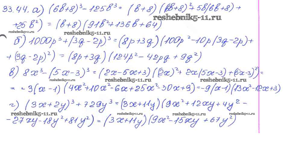 Готовая домашняя работа с ответами по Алгебре за 7 класс Мордкович, Александрова, Мишустина, Тульчинская Задачник Базовый уровень Часть 2 Мнемозина 2013 ФГОС - § 33. Разложение многочленов на множители с помощью формул сокращенного умножения 44
