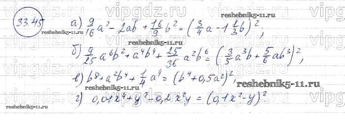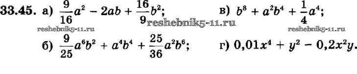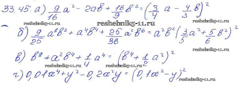 Готовая домашняя работа с ответами по Алгебре за 7 класс Мордкович, Александрова, Мишустина, Тульчинская Задачник Базовый уровень Часть 2 Мнемозина 2013 ФГОС - § 33. Разложение многочленов на множители с помощью формул сокращенного умножения 45