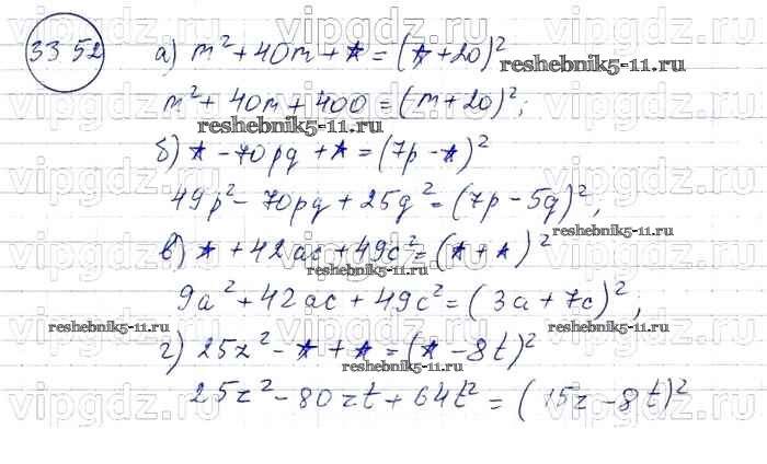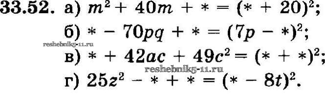Готовая домашняя работа с ответами по Алгебре за 7 класс Мордкович, Александрова, Мишустина, Тульчинская Задачник Базовый уровень Часть 2 Мнемозина 2013 ФГОС - § 33. Разложение многочленов на множители с помощью формул сокращенного умножения 52