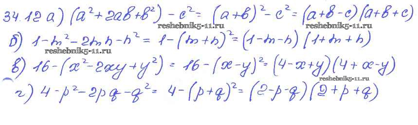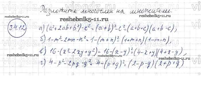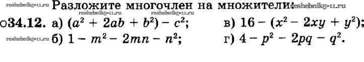 Готовая домашняя работа с ответами по Алгебре за 7 класс Мордкович, Александрова, Мишустина, Тульчинская Задачник Базовый уровень Часть 2 Мнемозина 2013 ФГОС - § 34. Разложение многочленов на множители с помощью комбинаций различных приемов 12