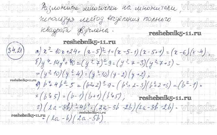 Готовая домашняя работа с ответами по Алгебре за 7 класс Мордкович, Александрова, Мишустина, Тульчинская Задачник Базовый уровень Часть 2 Мнемозина 2013 ФГОС - § 34. Разложение многочленов на множители с помощью комбинаций различных приемов 21