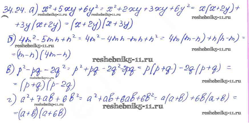 Готовая домашняя работа с ответами по Алгебре за 7 класс Мордкович, Александрова, Мишустина, Тульчинская Задачник Базовый уровень Часть 2 Мнемозина 2013 ФГОС - § 34. Разложение многочленов на множители с помощью комбинаций различных приемов 24