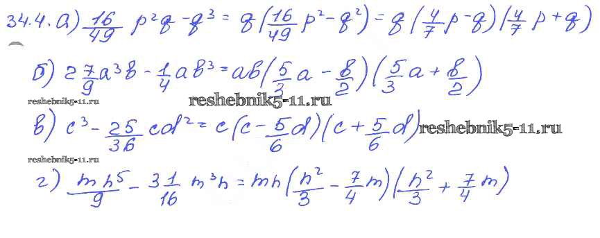 Готовая домашняя работа с ответами по Алгебре за 7 класс Мордкович, Александрова, Мишустина, Тульчинская Задачник Базовый уровень Часть 2 Мнемозина 2013 ФГОС - § 34. Разложение многочленов на множители с помощью комбинаций различных приемов 4