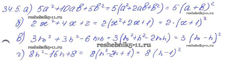 Готовая домашняя работа с ответами по Алгебре за 7 класс Мордкович, Александрова, Мишустина, Тульчинская Задачник Базовый уровень Часть 2 Мнемозина 2013 ФГОС - § 34. Разложение многочленов на множители с помощью комбинаций различных приемов 5