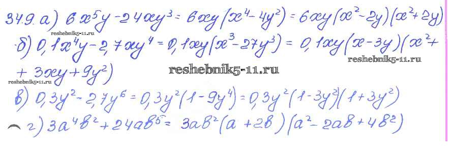 Готовая домашняя работа с ответами по Алгебре за 7 класс Мордкович, Александрова, Мишустина, Тульчинская Задачник Базовый уровень Часть 2 Мнемозина 2013 ФГОС - § 34. Разложение многочленов на множители с помощью комбинаций различных приемов 9