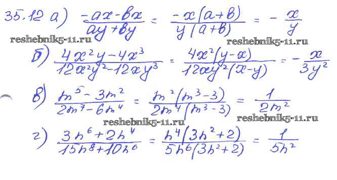 Готовая домашняя работа с ответами по Алгебре за 7 класс Мордкович, Александрова, Мишустина, Тульчинская Задачник Базовый уровень Часть 2 Мнемозина 2013 ФГОС - § 35. Сокращение алгебраических дробей 12