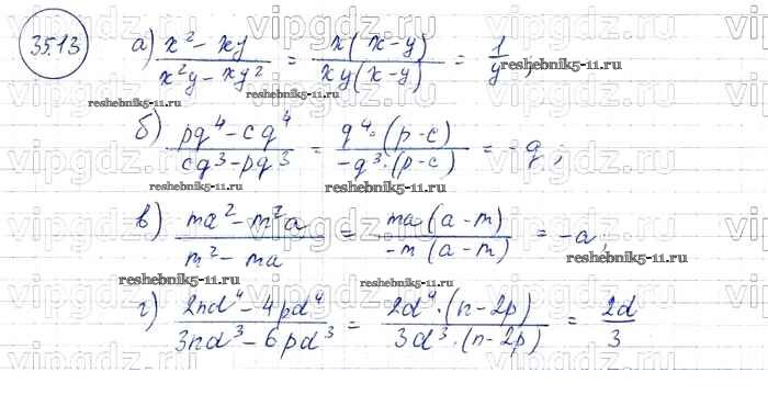 Готовая домашняя работа с ответами по Алгебре за 7 класс Мордкович, Александрова, Мишустина, Тульчинская Задачник Базовый уровень Часть 2 Мнемозина 2013 ФГОС - § 35. Сокращение алгебраических дробей 13