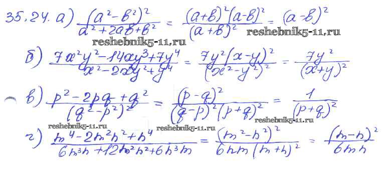 Готовая домашняя работа с ответами по Алгебре за 7 класс Мордкович, Александрова, Мишустина, Тульчинская Задачник Базовый уровень Часть 2 Мнемозина 2013 ФГОС - § 35. Сокращение алгебраических дробей 24