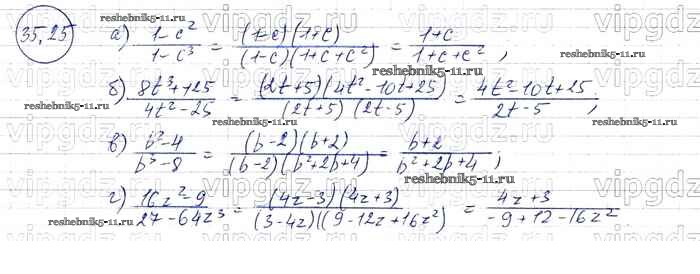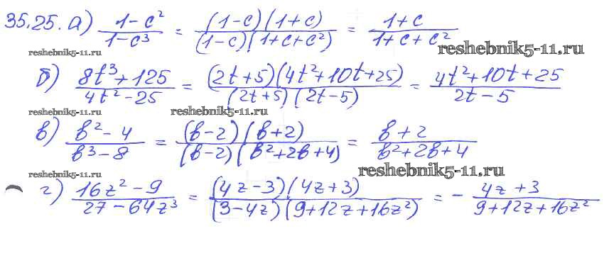 Готовая домашняя работа с ответами по Алгебре за 7 класс Мордкович, Александрова, Мишустина, Тульчинская Задачник Базовый уровень Часть 2 Мнемозина 2013 ФГОС - § 35. Сокращение алгебраических дробей 25
