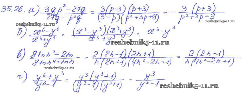 Готовая домашняя работа с ответами по Алгебре за 7 класс Мордкович, Александрова, Мишустина, Тульчинская Задачник Базовый уровень Часть 2 Мнемозина 2013 ФГОС - § 35. Сокращение алгебраических дробей 26