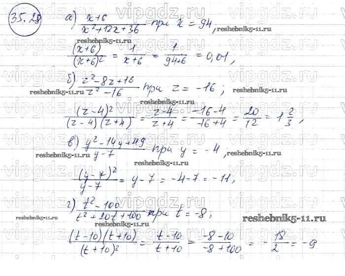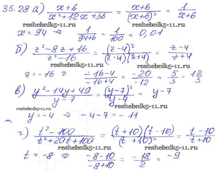 Готовая домашняя работа с ответами по Алгебре за 7 класс Мордкович, Александрова, Мишустина, Тульчинская Задачник Базовый уровень Часть 2 Мнемозина 2013 ФГОС - § 35. Сокращение алгебраических дробей 28