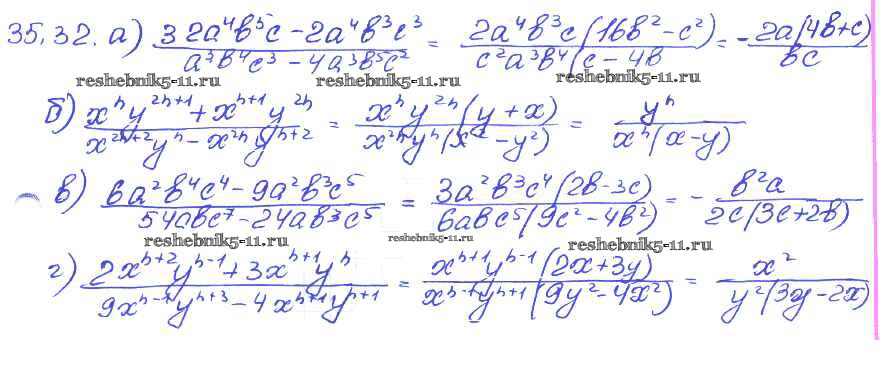 Готовая домашняя работа с ответами по Алгебре за 7 класс Мордкович, Александрова, Мишустина, Тульчинская Задачник Базовый уровень Часть 2 Мнемозина 2013 ФГОС - § 35. Сокращение алгебраических дробей 32