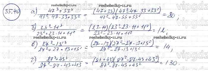 Готовая домашняя работа с ответами по Алгебре за 7 класс Мордкович, Александрова, Мишустина, Тульчинская Задачник Базовый уровень Часть 2 Мнемозина 2013 ФГОС - § 35. Сокращение алгебраических дробей 40