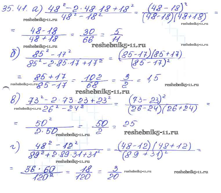 Готовая домашняя работа с ответами по Алгебре за 7 класс Мордкович, Александрова, Мишустина, Тульчинская Задачник Базовый уровень Часть 2 Мнемозина 2013 ФГОС - § 35. Сокращение алгебраических дробей 41