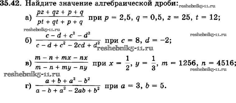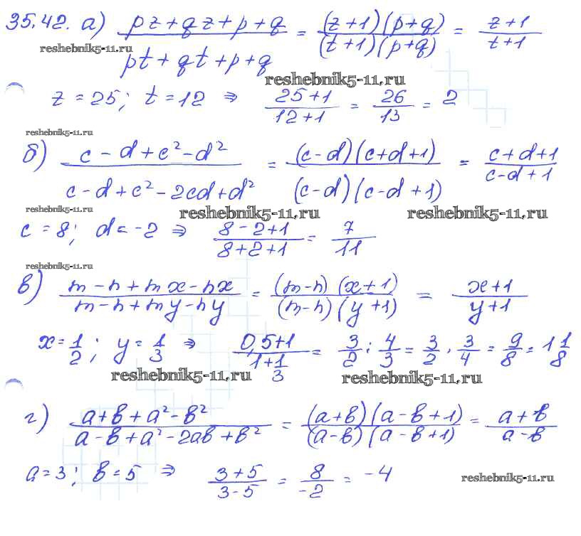 Готовая домашняя работа с ответами по Алгебре за 7 класс Мордкович, Александрова, Мишустина, Тульчинская Задачник Базовый уровень Часть 2 Мнемозина 2013 ФГОС - § 35. Сокращение алгебраических дробей 42