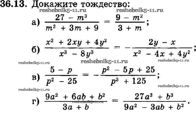 Готовая домашняя работа с ответами по Алгебре за 7 класс Мордкович, Александрова, Мишустина, Тульчинская Задачник Базовый уровень Часть 2 Мнемозина 2013 ФГОС - § 36. Тождества 13