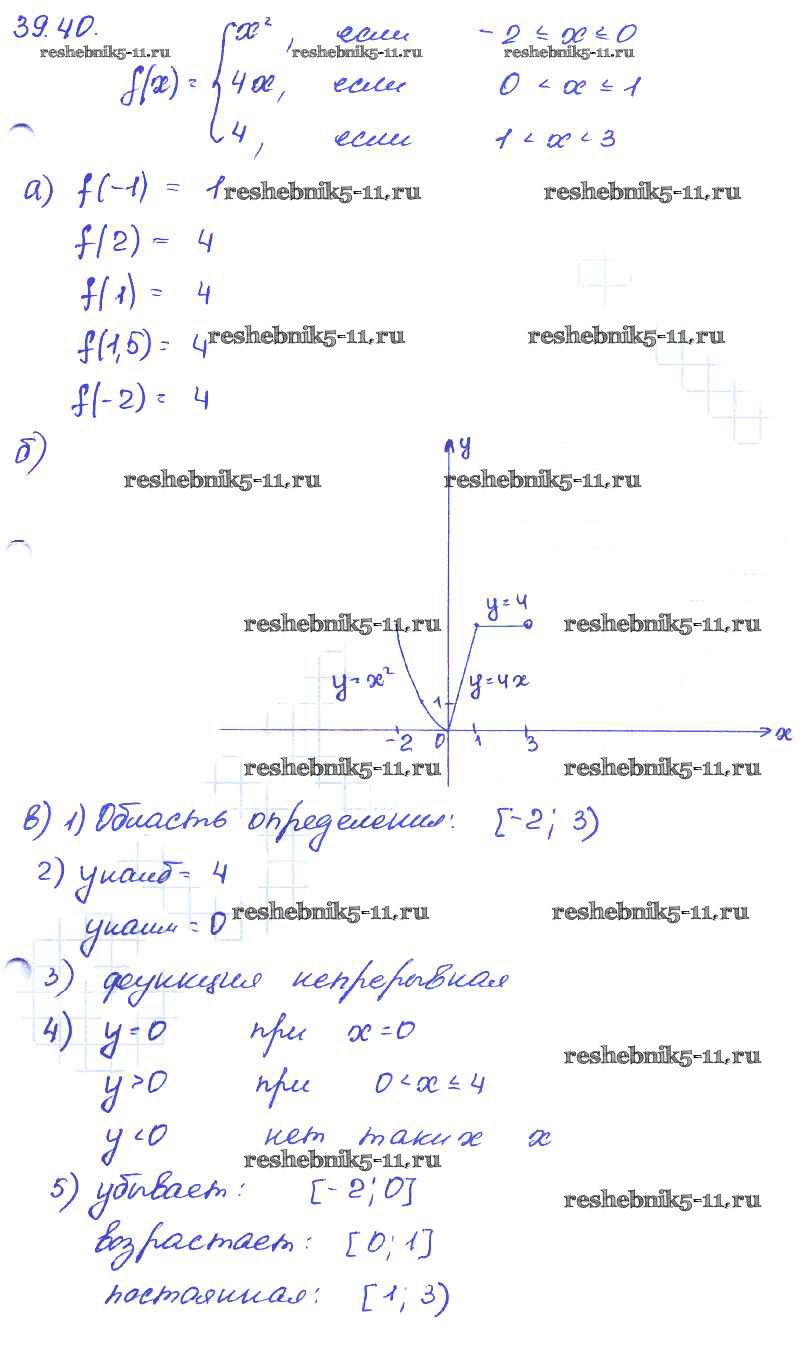Готовая домашняя работа с ответами по Алгебре за 7 класс Мордкович, Александрова, Мишустина, Тульчинская Задачник Базовый уровень Часть 2 Мнемозина 2013 ФГОС - § 39. Что означает в математике запись у = f{x) 40