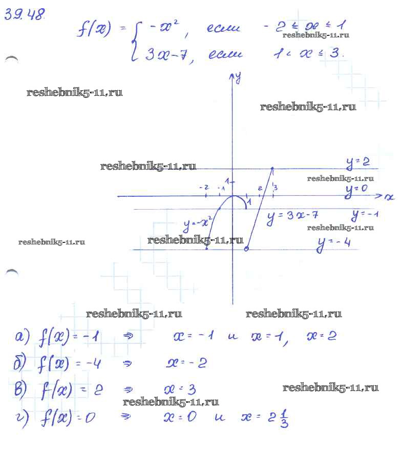 Готовая домашняя работа с ответами по Алгебре за 7 класс Мордкович, Александрова, Мишустина, Тульчинская Задачник Базовый уровень Часть 2 Мнемозина 2013 ФГОС - § 39. Что означает в математике запись у = f{x) 48