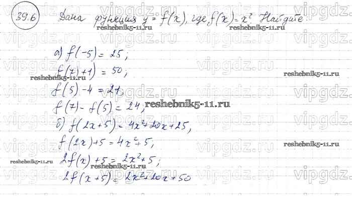 Готовая домашняя работа с ответами по Алгебре за 7 класс Мордкович, Александрова, Мишустина, Тульчинская Задачник Базовый уровень Часть 2 Мнемозина 2013 ФГОС - § 39. Что означает в математике запись у = f{x) 6