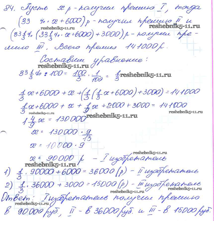 Готовая домашняя работа с ответами по Алгебре за 7 класс Мордкович, Александрова, Мишустина, Тульчинская Задачник Базовый уровень Часть 2 Мнемозина 2013 ФГОС - Глава 9. Итоговое повторение 84