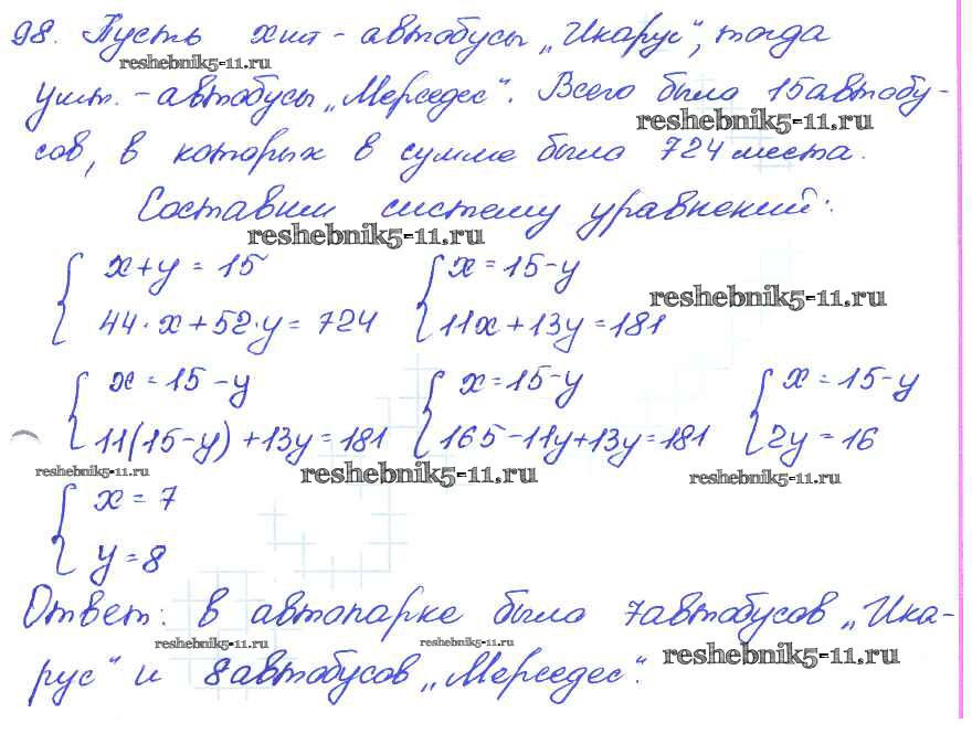 Алгебра за 7 класс Мордкович Задачник Базовый уровень Мнемозина глава 9. итоговое повторение 98