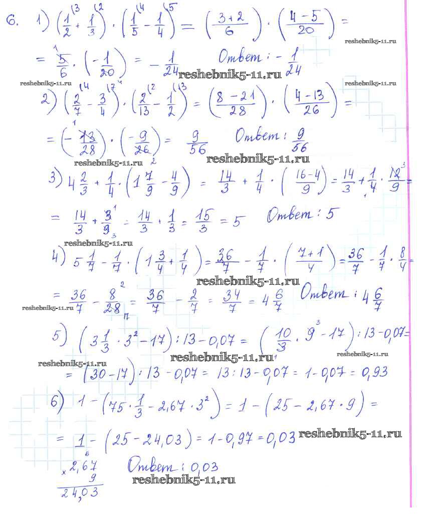 Готовая домашняя работа с ответами по Алгебре за 7 класс Колягин, Ткачёва, Федорова, Шабунин Учебник Просвещение 2014 ФГОС - §1. Числовые выражения 6