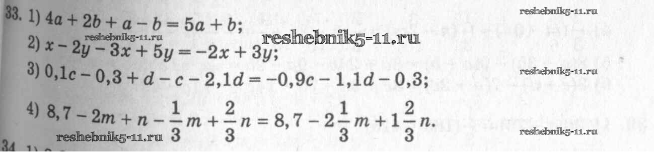 Готовая домашняя работа с ответами по Алгебре за 7 класс Колягин, Ткачёва, Федорова, Шабунин Учебник Просвещение 2014 ФГОС - §4. Свойства арифметических действий 33