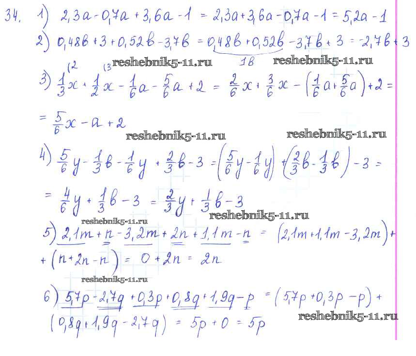 Готовая домашняя работа с ответами по Алгебре за 7 класс Колягин, Ткачёва, Федорова, Шабунин Учебник Просвещение 2014 ФГОС - §4. Свойства арифметических действий 34