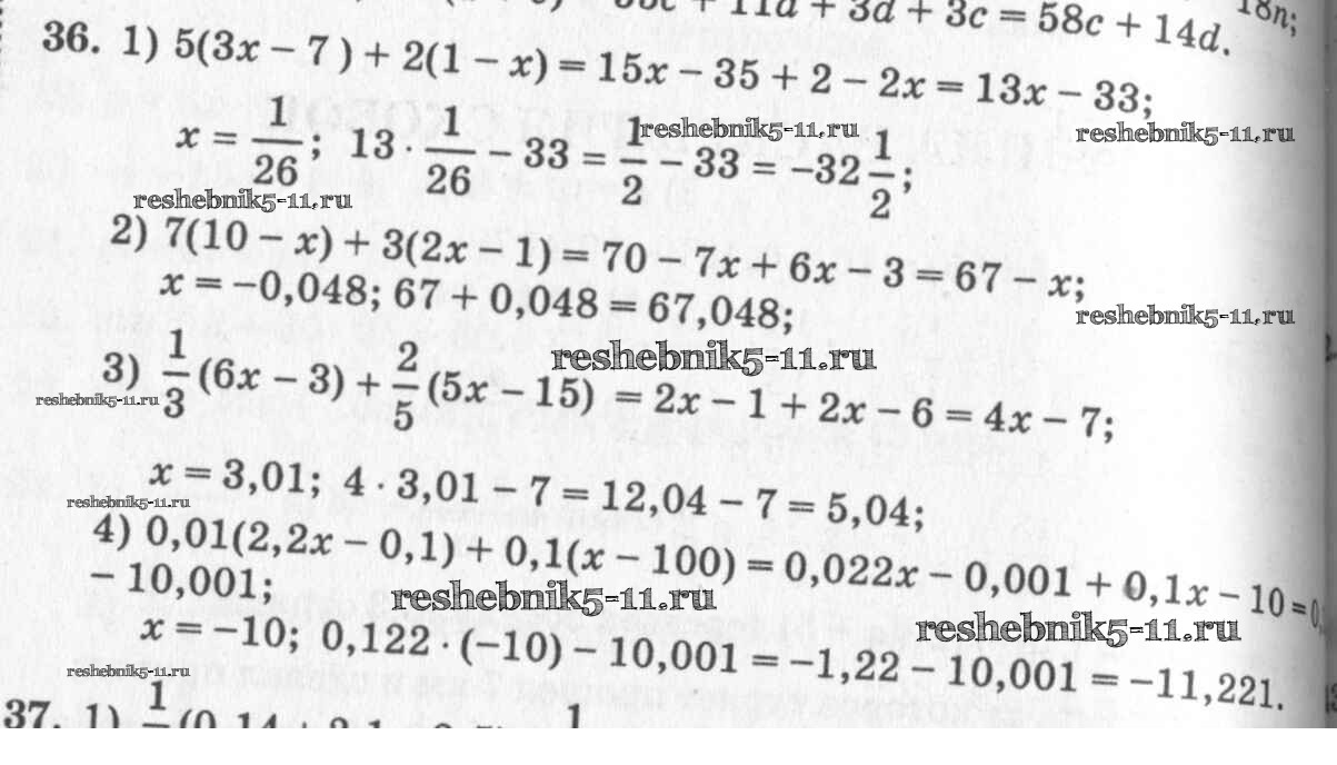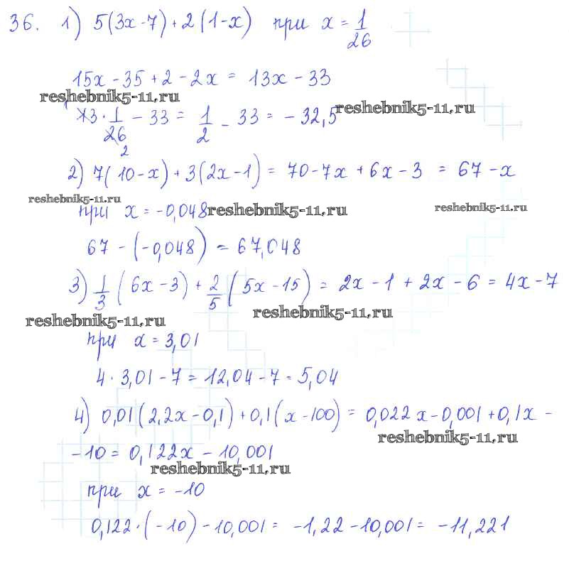 Готовая домашняя работа с ответами по Алгебре за 7 класс Колягин, Ткачёва, Федорова, Шабунин Учебник Просвещение 2014 ФГОС - §4. Свойства арифметических действий 36