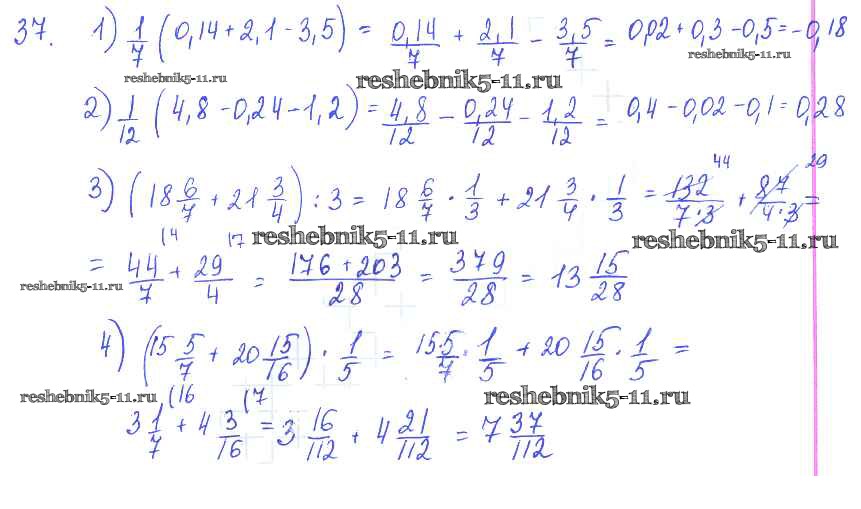 Готовая домашняя работа с ответами по Алгебре за 7 класс Колягин, Ткачёва, Федорова, Шабунин Учебник Просвещение 2014 ФГОС - §4. Свойства арифметических действий 37