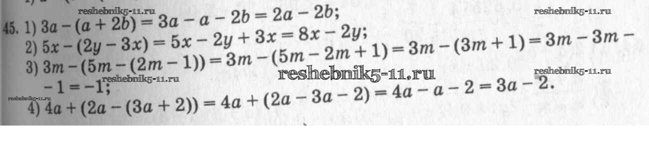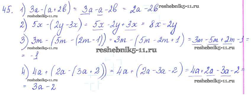 Готовая домашняя работа с ответами по Алгебре за 7 класс Колягин, Ткачёва, Федорова, Шабунин Учебник Просвещение 2014 ФГОС - §5. Правила раскрытия скобок 45