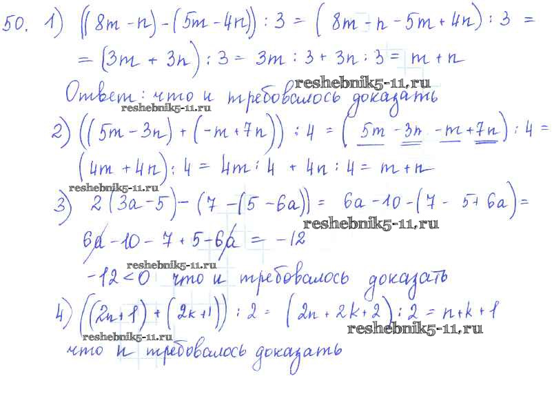 Готовая домашняя работа с ответами по Алгебре за 7 класс Колягин, Ткачёва, Федорова, Шабунин Учебник Просвещение 2014 ФГОС - §5. Правила раскрытия скобок 50