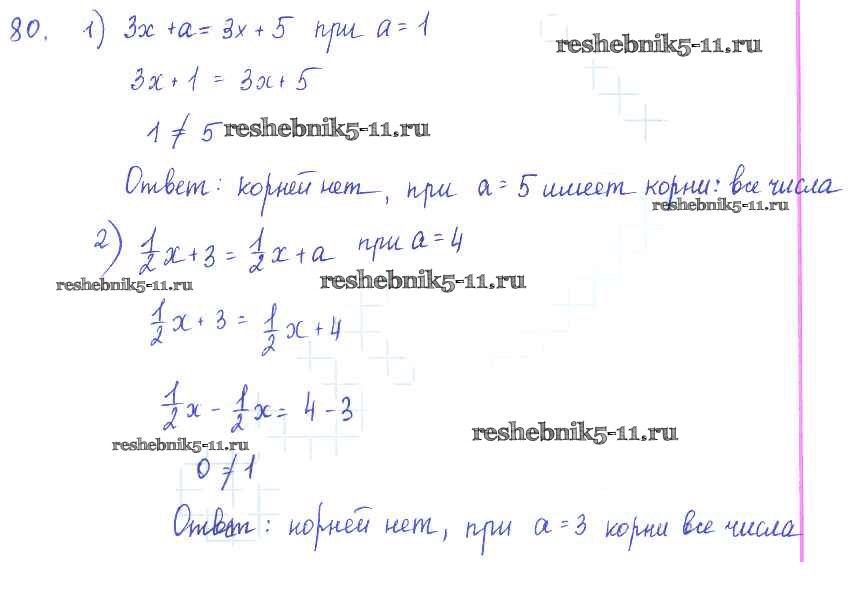 Готовая домашняя работа с ответами по Алгебре за 7 класс Колягин, Ткачёва, Федорова, Шабунин Учебник Просвещение 2014 ФГОС - §6. Уравнение и его корни 80