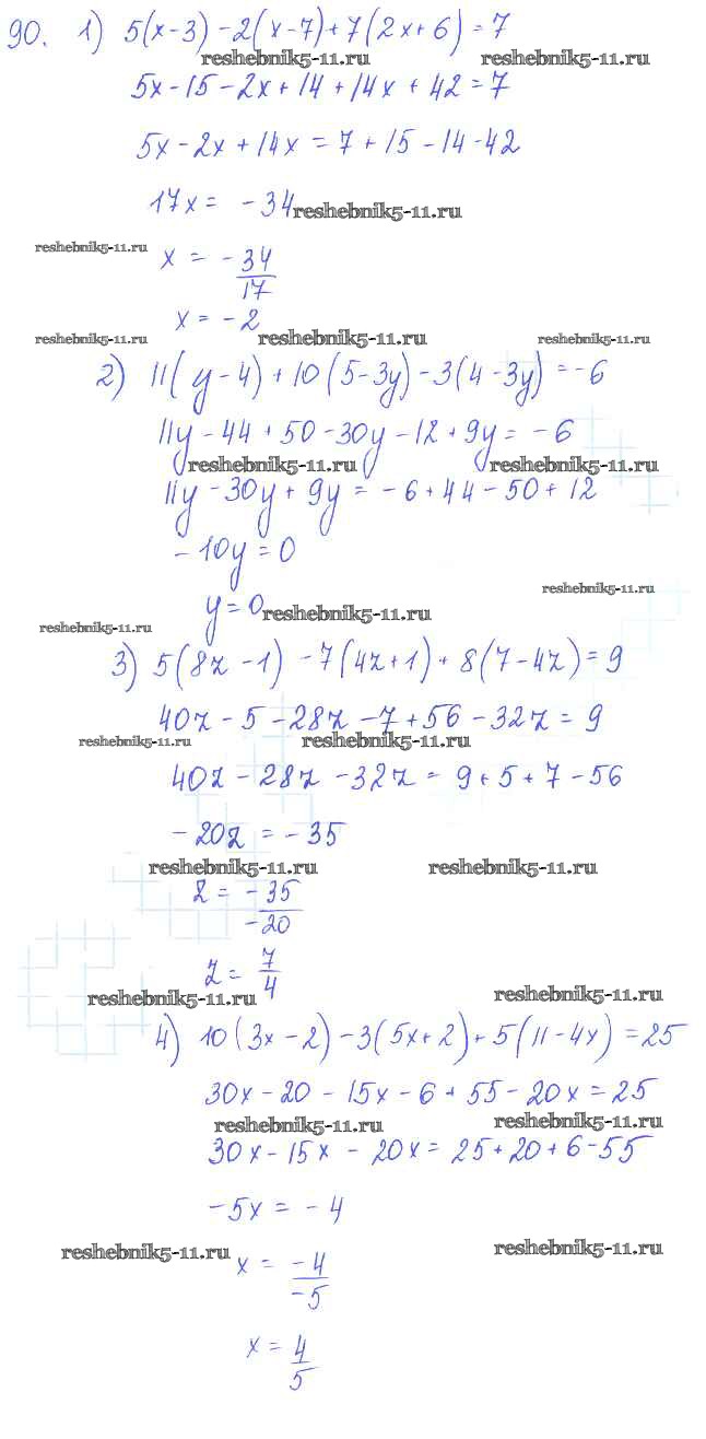 Готовая домашняя работа с ответами по Алгебре за 7 класс Колягин, Ткачёва, Федорова, Шабунин Учебник Просвещение 2014 ФГОС - §7. Решение уравнений с одним неизвестным, сводящихся к линейным 90