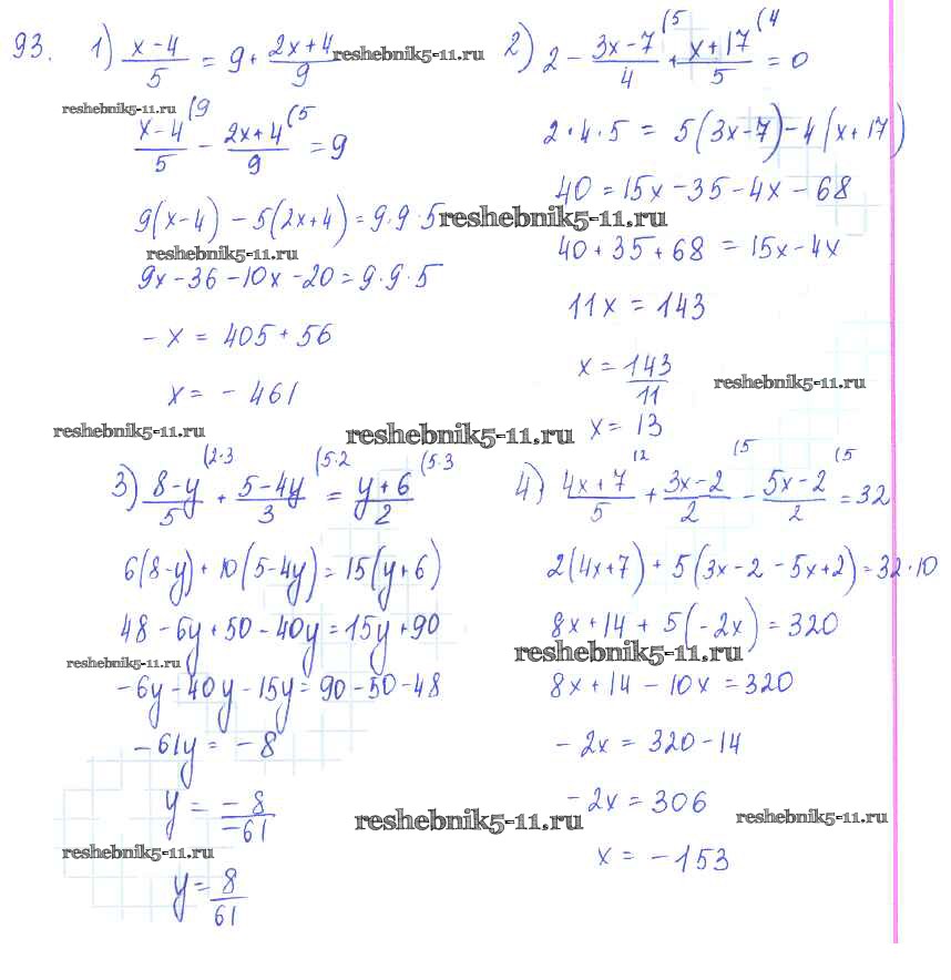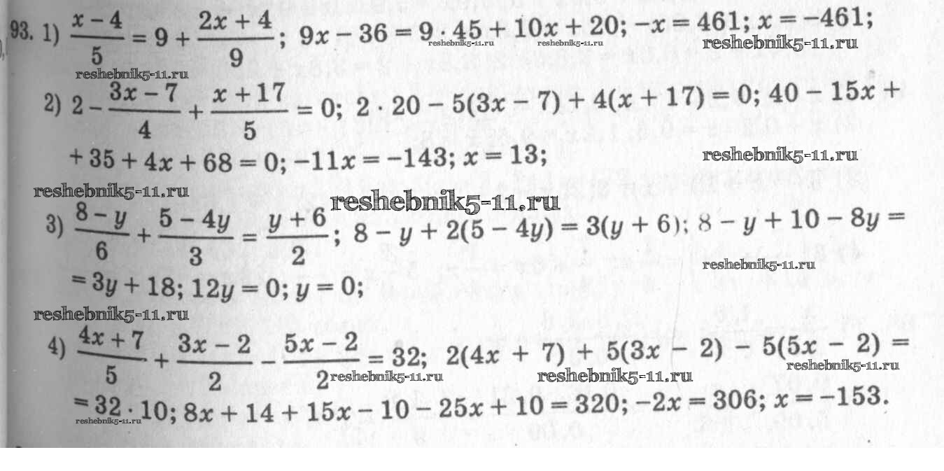 Готовая домашняя работа с ответами по Алгебре за 7 класс Колягин, Ткачёва, Федорова, Шабунин Учебник Просвещение 2014 ФГОС - §7. Решение уравнений с одним неизвестным, сводящихся к линейным 93