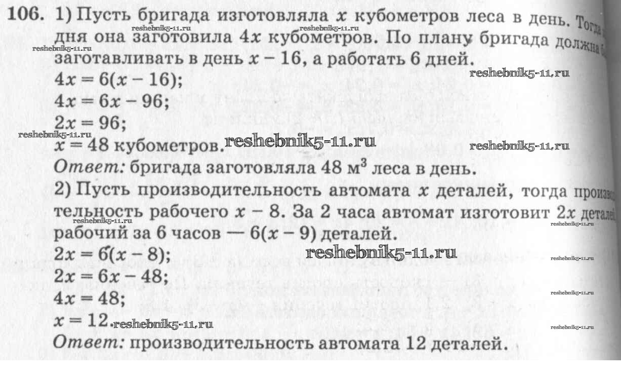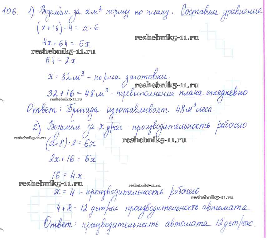 Готовая домашняя работа с ответами по Алгебре за 7 класс Колягин, Ткачёва, Федорова, Шабунин Учебник Просвещение 2014 ФГОС - §8. Решение задач с помощью уравнений 106