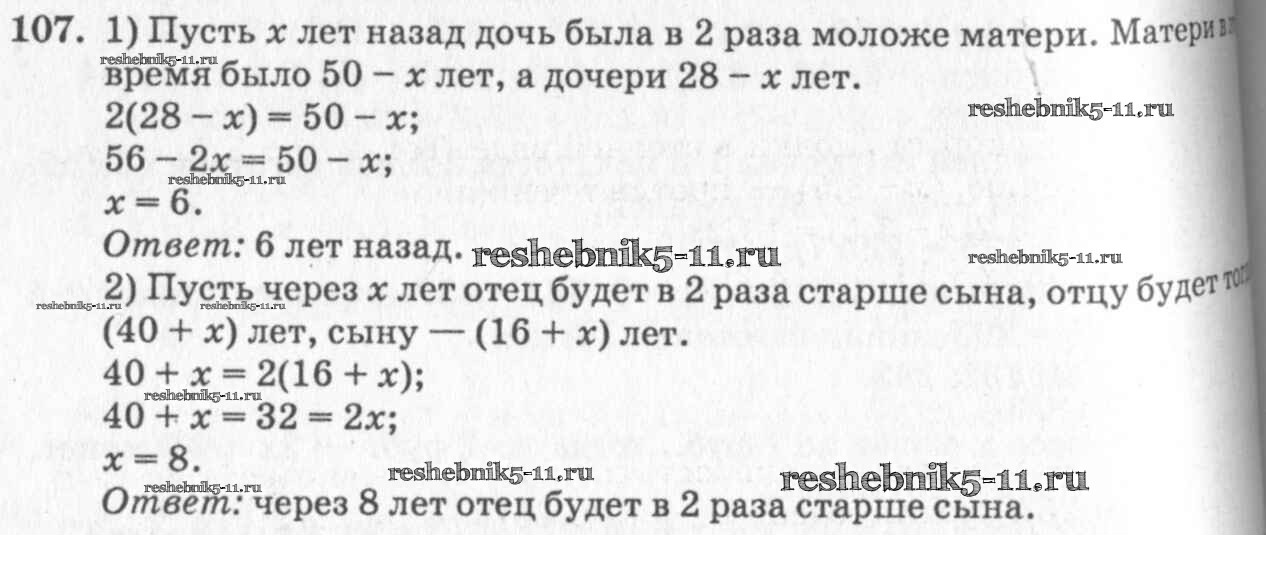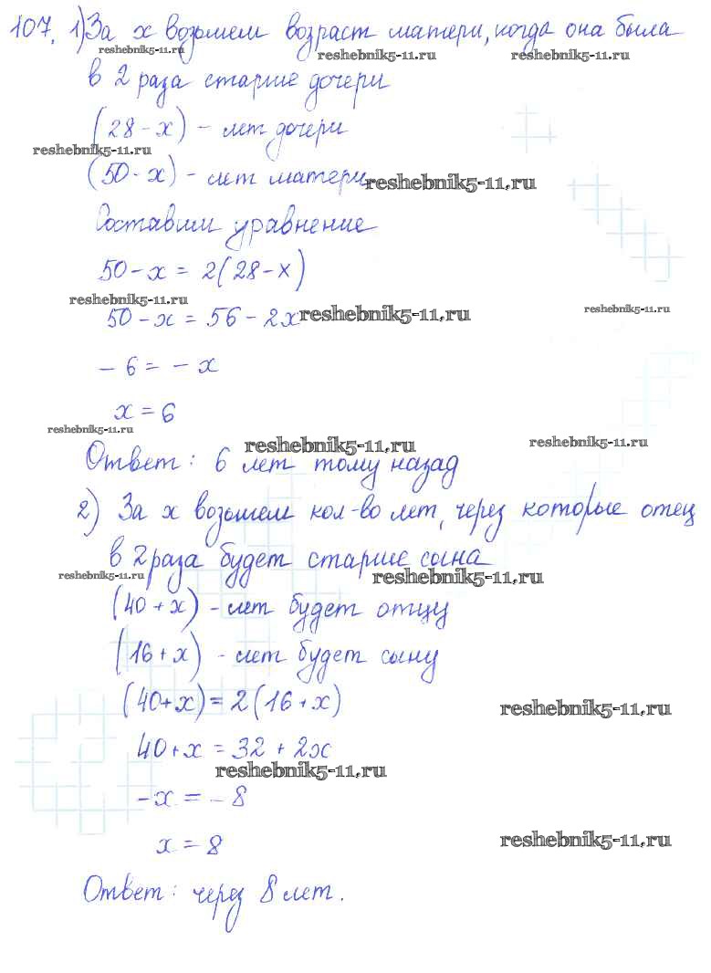 Готовая домашняя работа с ответами по Алгебре за 7 класс Колягин, Ткачёва, Федорова, Шабунин Учебник Просвещение 2014 ФГОС - §8. Решение задач с помощью уравнений 107